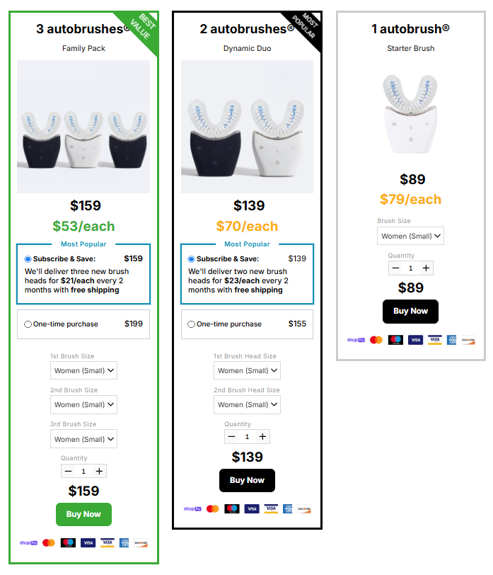 Currently, you can get your Autobrush starting from just $53 per unit when choosing the family bundle — a one-time payment with no subscriptions or hidden fees.