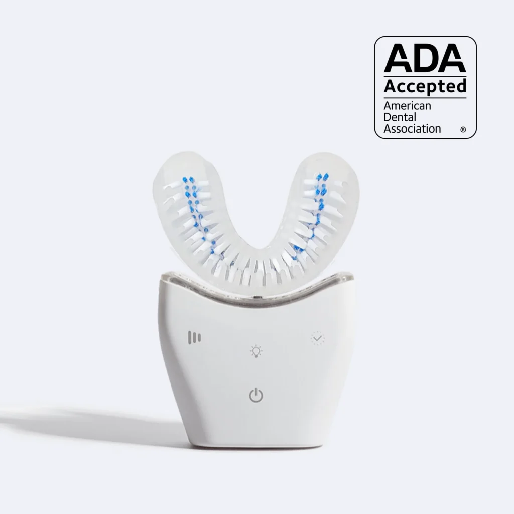The U-shaped design surrounds your teeth to clean all surfaces simultaneously, including areas often missed with regular brushing.